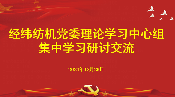 按照上级党委的统一部署及经纬纺机(以下简称“公司”)党委年度重点工作计划安排,2024年12月26日,公司党委召开理论学习中心组专题研讨暨调研成果交流会议。公司党委书记、董事长、总经理邵明东及公司党政领导班子成员参加会议。