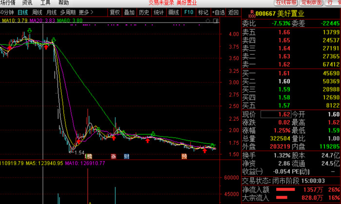 值得一提的是,美好置业8月25日的收盘价也仅为1.62元/股,仍面临着面值退市的风险,而不理想的业绩或将对股价带来进一步的压力。