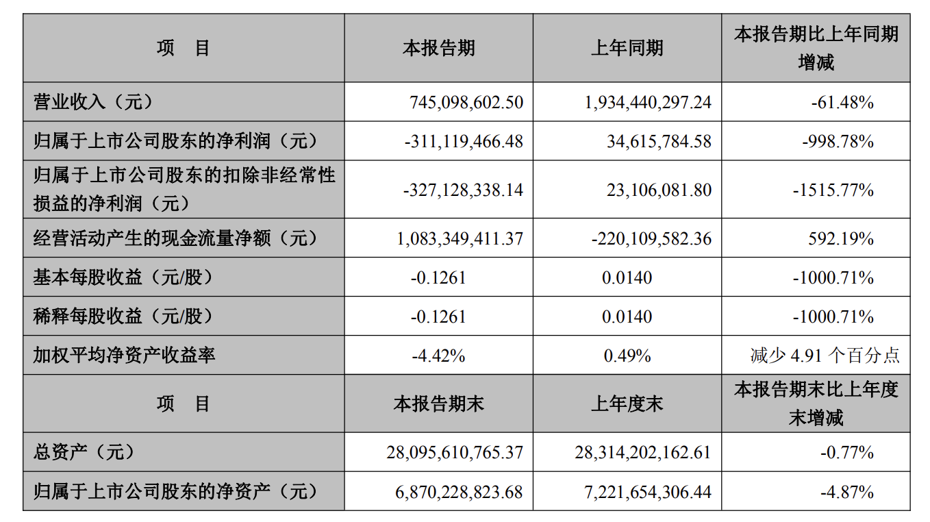 2、受房地产开发周期影响,本期房地产项目结算面积、结算收入较少,造成房地产业务本期业绩亏损。报告期内,公司房产开发项目整体销售情况稳定,完成销售27亿元,实现回款30亿元,经营活动现金流改善明显,实现净流入超10亿元。期末房地产业务预收房款余额125亿元,尚未达到结算条件,将在以后期间逐步确认收入;
