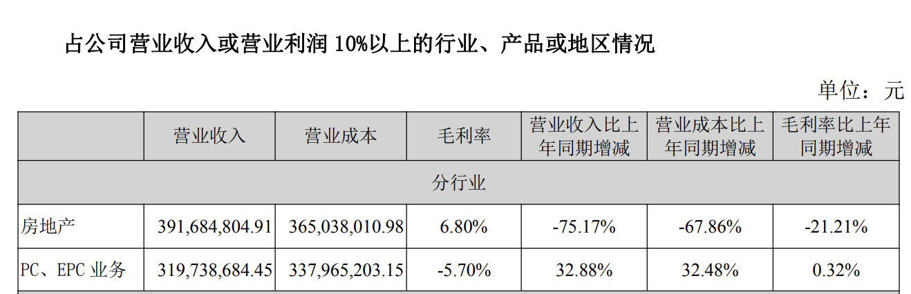 此外,公司房地产业务毛利率为6.80%,较上年同期大幅减少21.2个百分点,远低于行业平均毛利率水平。