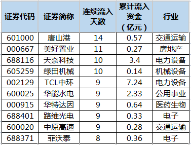 数据宝统计,截至2月2日收盘,沪深两市共76只个股连续5日或5日以上主力资金净流入。连续流入天数最多的是唐山港,已连续14个交易日净流入。连续净流入天数较多的还有美好置业、天奈科技、绿田机械、TCL中环、华能水电,分别获11个、10个、10个、9个、9个交易日净流入。