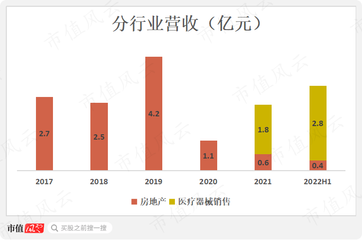 2021年,医疗器械销售规模1.8亿,占营收比重达72%,而房地产相关业务营收仅0.6亿。