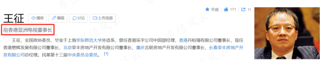 百度词条上,王征还有一个身份——前香港亚视老板。