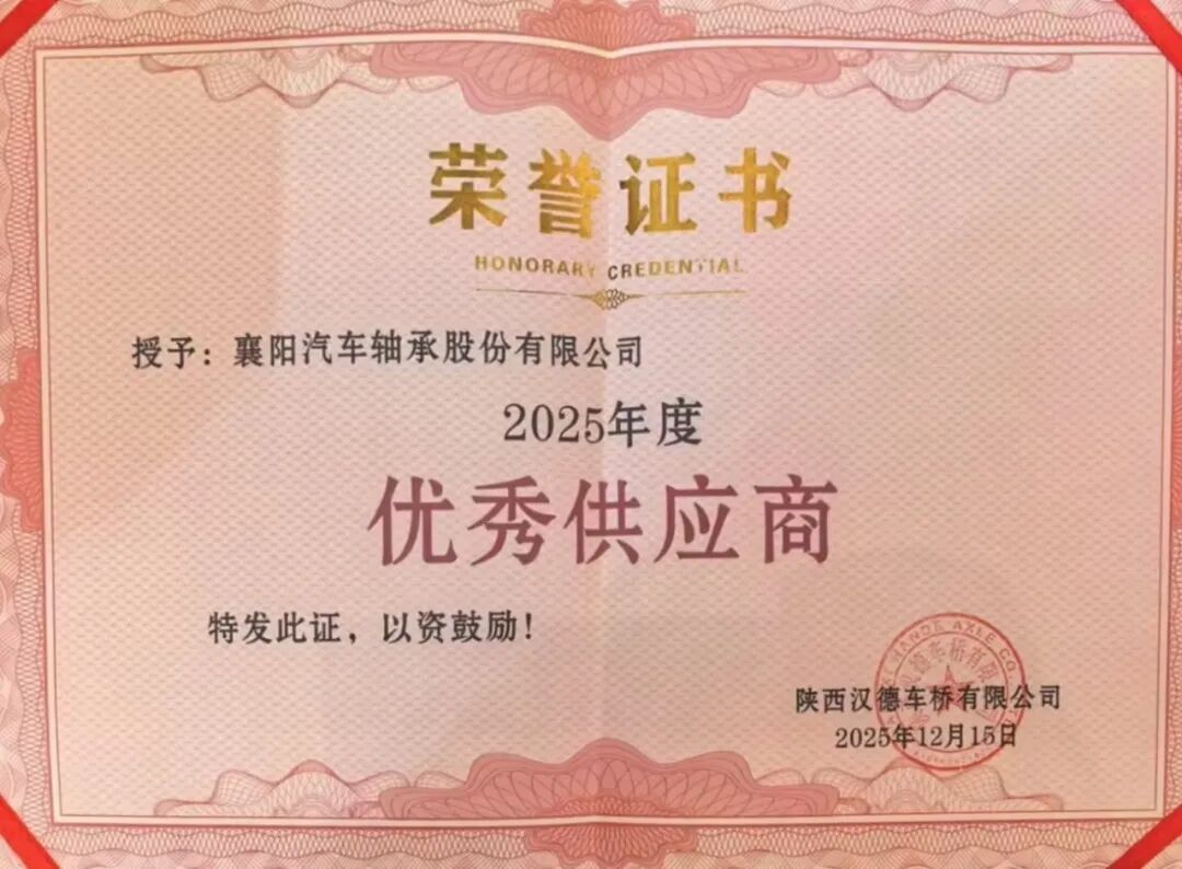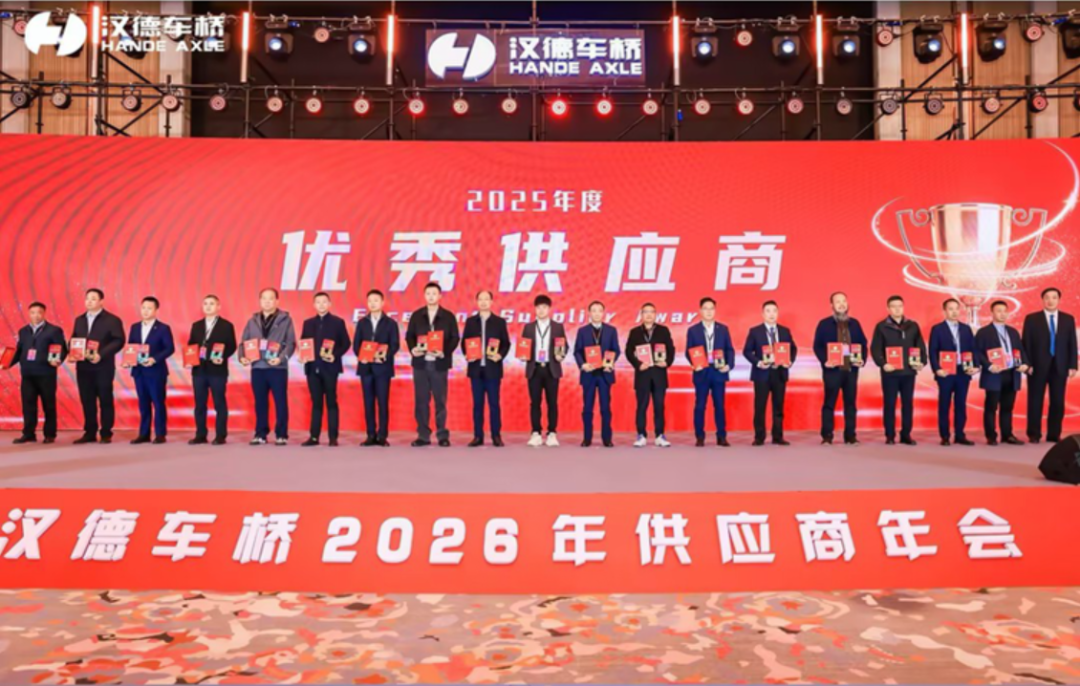 12月15日,汉德车桥2026年供应商年会在苏州盛大启幕。 襄阳轴承 凭借卓越的产品品质、稳定的交付能力及全流程精细化服务,从数百家供应商中脱颖而出,荣获“优秀供应商”称号,再添一枚重量级行业勋章。