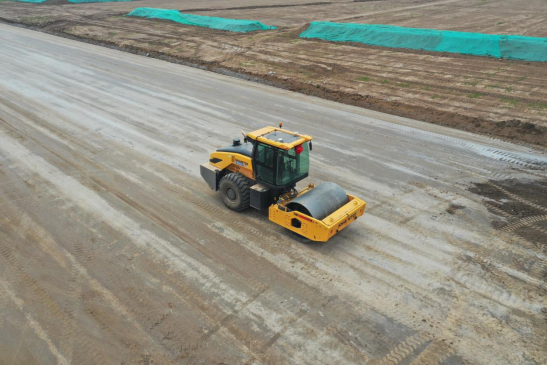 灰面压实/收面阶段:SR26H-Gi2 型单钢轮压路机再次上阵,以其出色的压实效果和收面质量,为后续施工奠定了坚实基础。