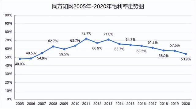 在商业系统中,毛利率不仅是一家公司盈利能力的关键指标,也是这家公司在产业上下游话语权以及行业竞争地位的直观体现。而知网的毛利率,常年维持在50%-70%之间。