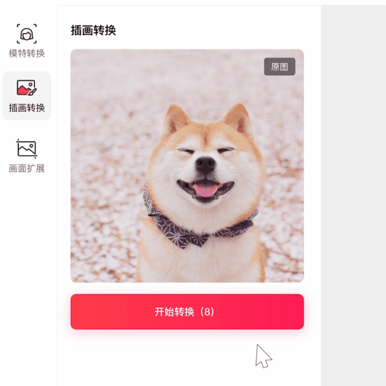 为达到更好的转换效果,建议选用人物、生活方式、宠物、家居等内容类型进行插画转换。