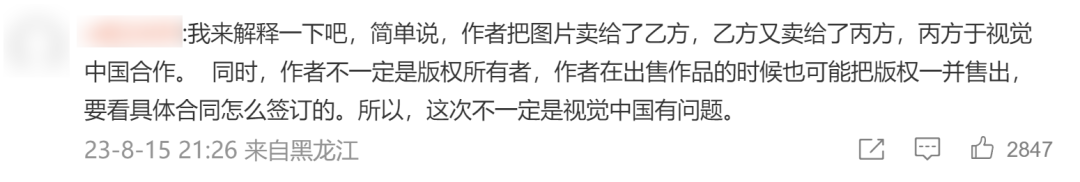 表示 Jeff 虽然是图片原作者,但“销售权和著作权”,可能早就兜兜转转到视觉中国手里了,所以视觉中国这波回马枪,很可能是没问题的。