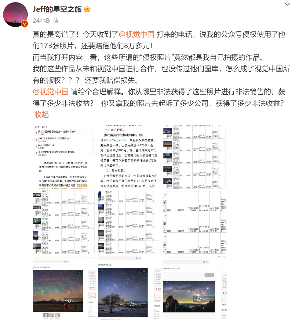 甚至连中国国家天文,都没逃得过视觉中国的制裁。