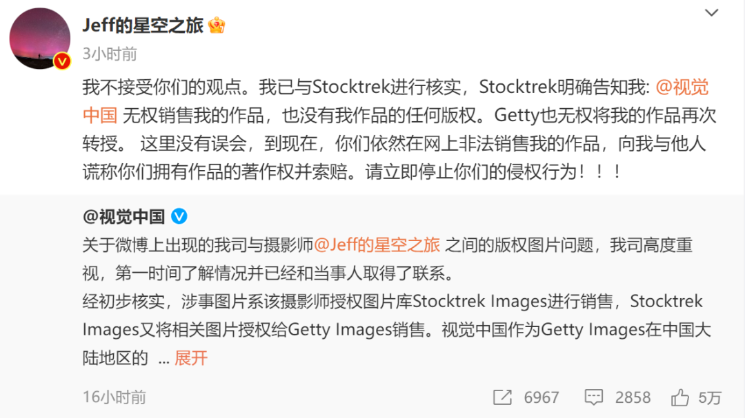 这几天,视觉中国和微博用户 Jeff 之间的瓜,上了热搜。