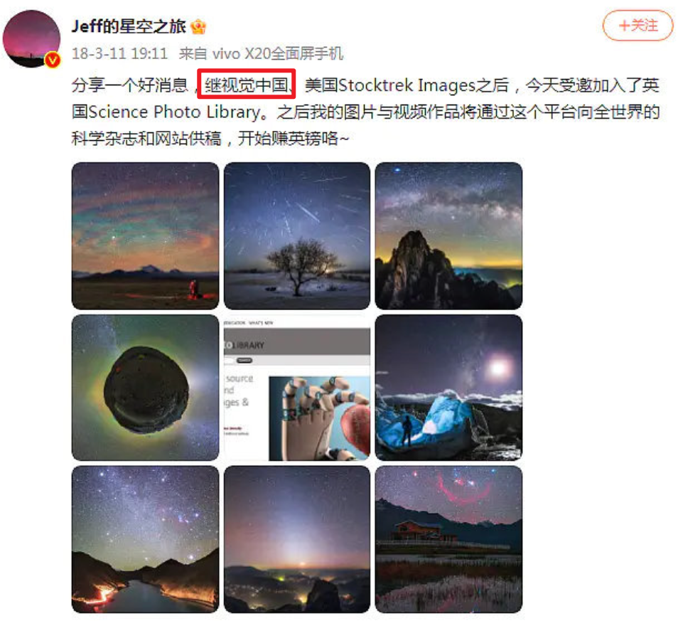 然后,还有人搬出了 18 年 Jeff 和视觉中国合作过的案例,试图证明二者的签约供稿关系。