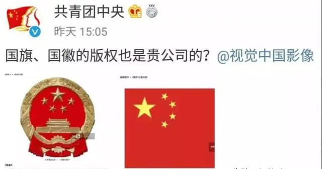 更更离谱的是,视觉中国的版权图库里,还曾有中国的国旗和国徽。