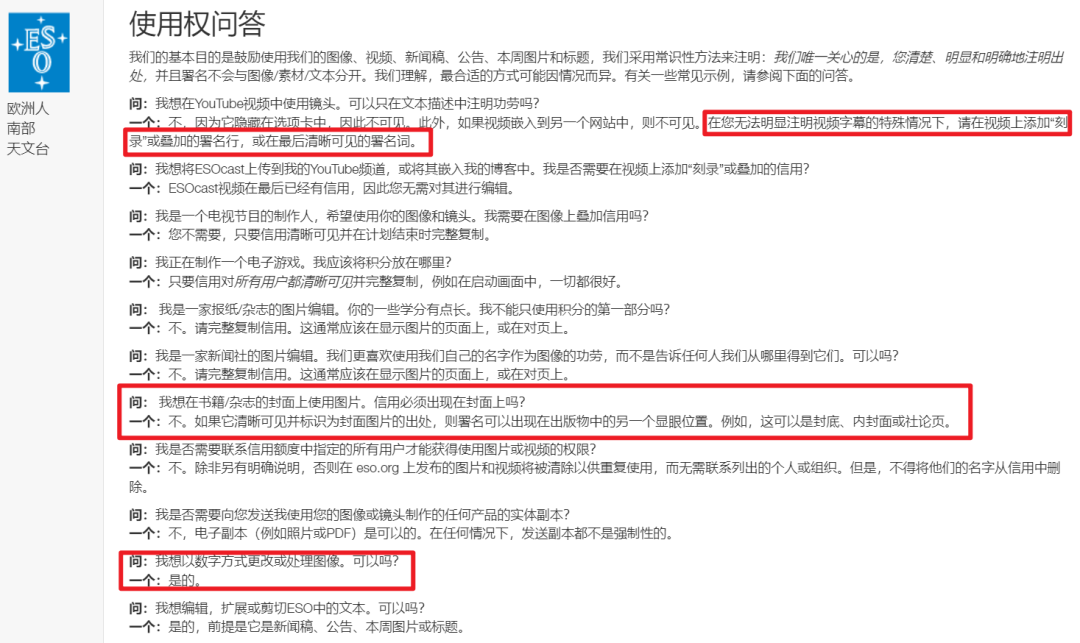 欧洲天文台关于图片使用权说明,基本只要明确标注来源就可以使用