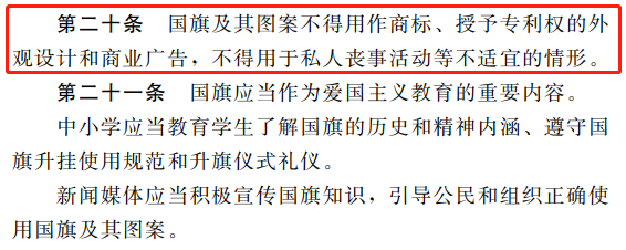 但根据《中华人民共和国商标法》和《中华人民共和国国旗法》中的条款,我们其实可以明确得知,就算是二次创作,商标和国旗国徽也对商用的行为要求十分严格。