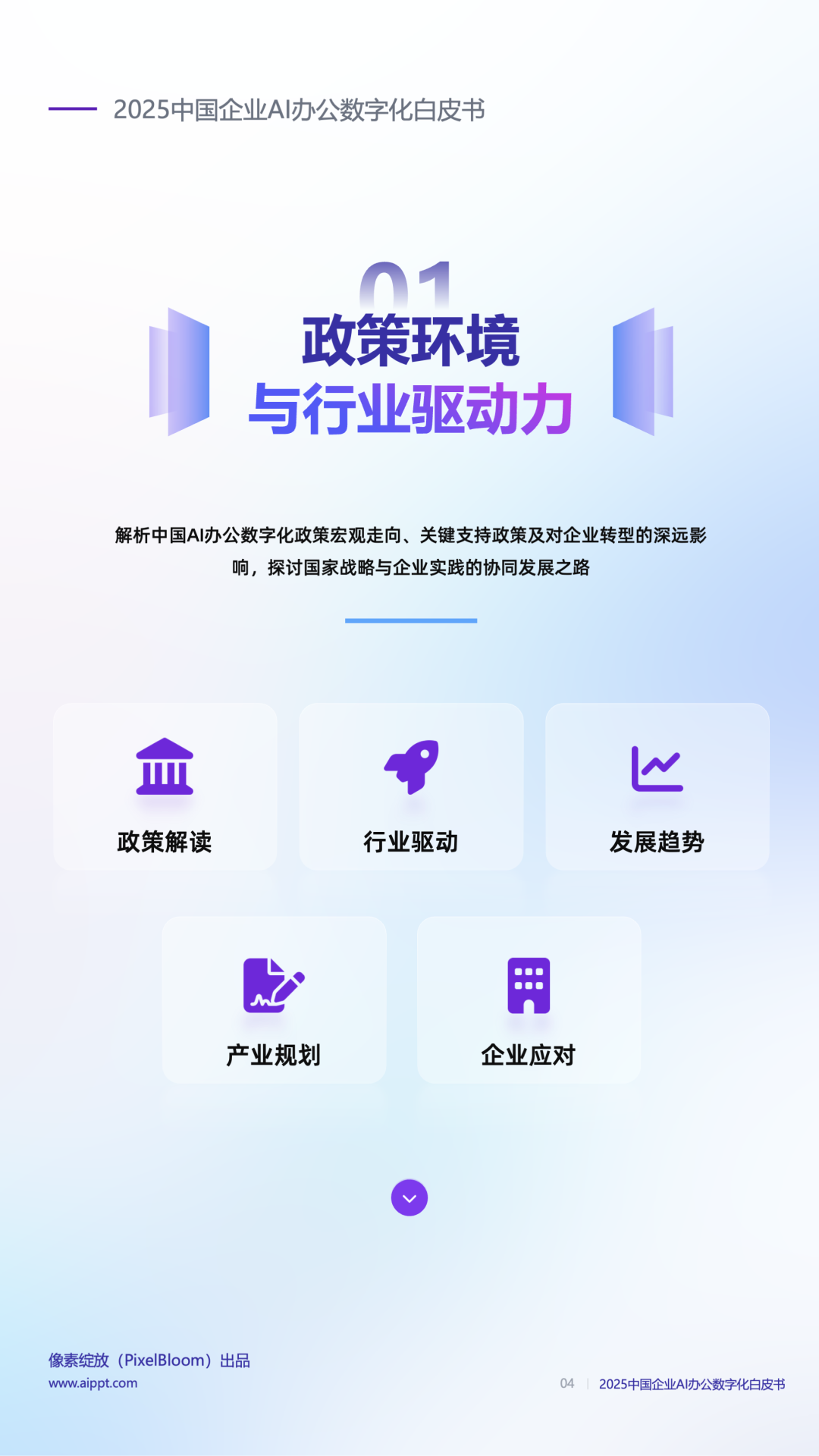 今日,AI办公赛道领军者、视觉中国战投企业像素绽放PixelBloom正式对外发布《2025中国企业AI办公数字化白皮书》,从政策红利、市场规模、技术趋势到15+行业落地案例,把AI办公的“机会点”和“避坑指南”扒得明明白白。