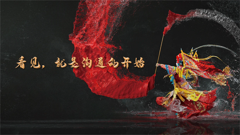 水墨京剧+数码水滴碰撞,隐喻“沟通流动”,传统文化秒变未来感视觉炸弹!