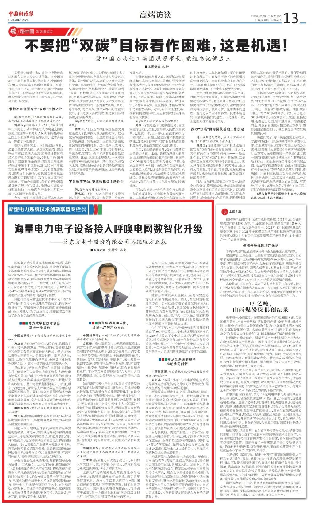中国能源报:目前东方电子在助力新型电力系统建设过程中已取得哪些成果?有哪些成功案例?