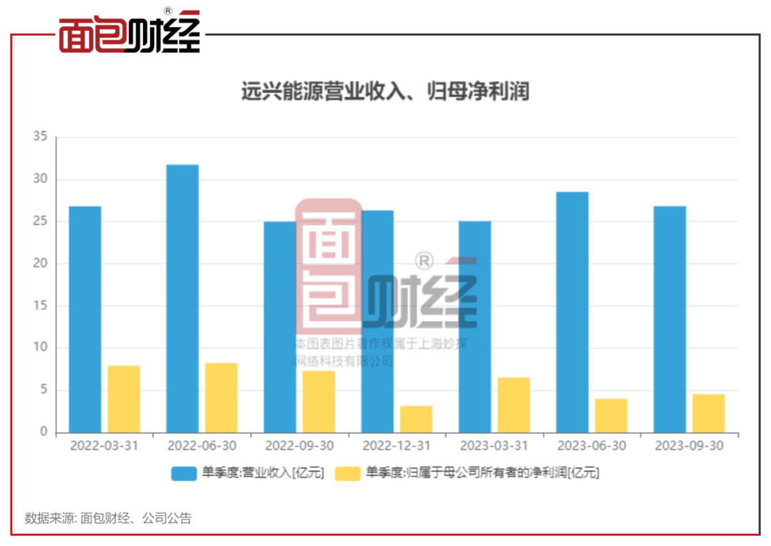 2023年前三季度,公司营收同比下降3.79%、归母净利润同比下降35.78%。远兴能源第三季度的营收增速同比转正,但归母净利润仍同比下滑37.76%。