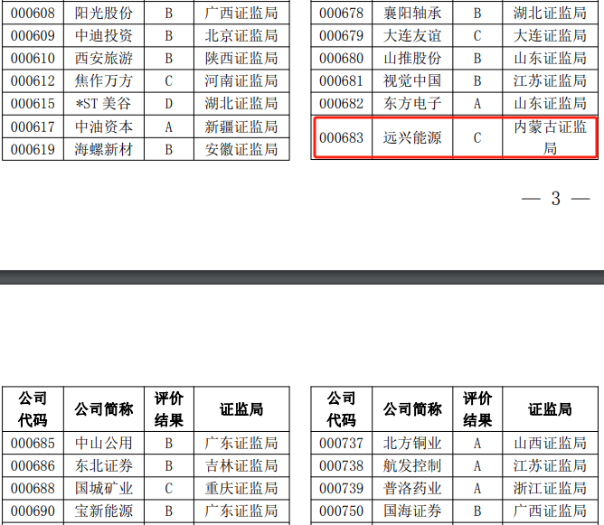 评价结果显示,远兴能源的信披评价结果被交易所从B降到C。
