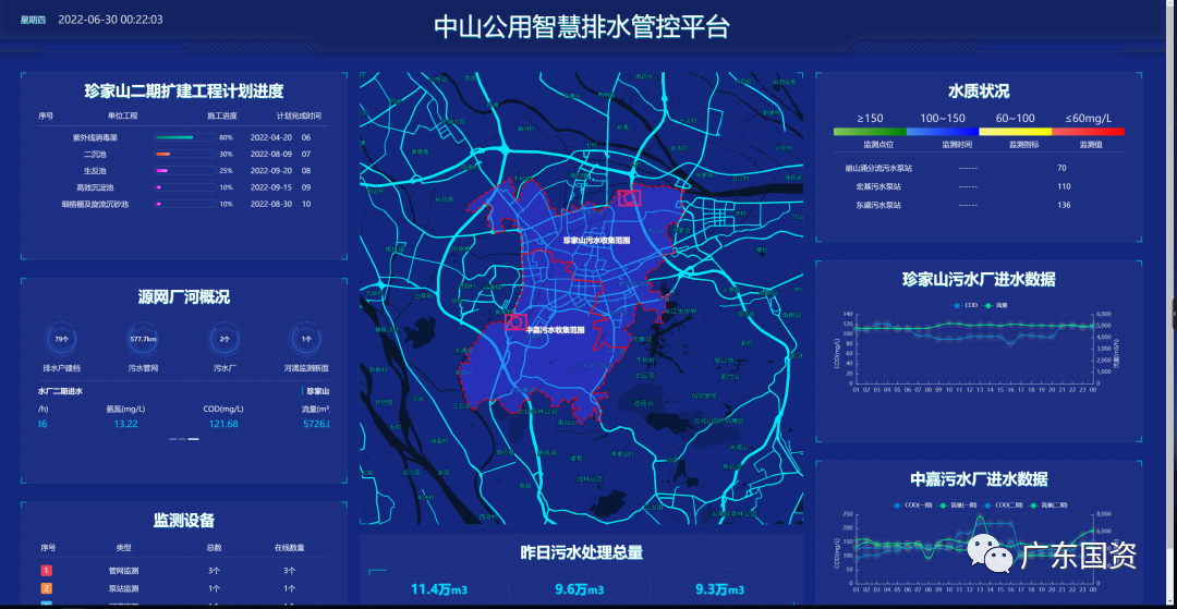 在水环境综合治理方面,“推进中山市排水厂网一体化”、“搭建智慧水务平台”等均是中山公用发力的重点。为落实市委市政府指示精神,推动建立全市排水设施统一运营、管理,统一标准的责、权、利,统一排水管理新体系,中山公用主动对接广州水投集团及智慧水务服务商等企业交流学习,通过搭建智慧水务平台,推行示范区域排水标杆化智慧管理,完善排水设施规划及修建管控标准等,推动水污染治理走向数字化、智能化、智慧化。为助力补齐中山市农村生活污水治理短板,积极开发“智慧农污平台”,为项目管理提供决策依据和数据支撑保障,提升农村污水治理项目工程项目管理水平。与此同时,中山公用积极推进中山市排水厂网一体化,为实现全市污水全收集、全处理,促进水生态环境质量持续改善提供国企的解决方案。