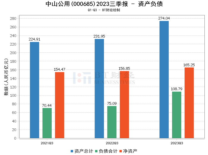 在资产负债方面,中山公用的总资产由上年度末的254.99亿元增长至本报告期末的274.04亿元,增长率为7.49%。负债合计也从上年度末的95.41亿元增加至108.79亿元。尽管负债有所增加,但净资产也实现了从159.59亿元增长至165.25亿元的积极变化。资产负债率略有上升,从上年度末的37.42%增至39.7%,显示公司财务结构的稳健。