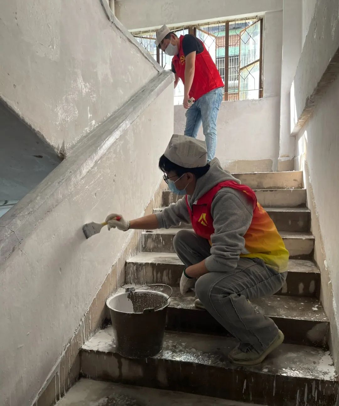 11月16日下午,名城科技组织党员志愿者联合花苑社区开展爱国卫生志愿服务活动。志愿者对路面垃圾、墙面“牛皮癣”以及楼顶卫生死角等进行整治清理,做到发现一处、清理一处。11月25日上午,名城科技组织党员志愿者前往花苑社区,参加“我为群众办实事——旧楼梯间墙体翻新活动”。活动现场,志愿者化身“美容师”,对楼道墙面进行深度清理、粉刷。原本布满灰尘、污渍的墙面经粉刷后变得干净整洁,楼道面貌焕然一新。