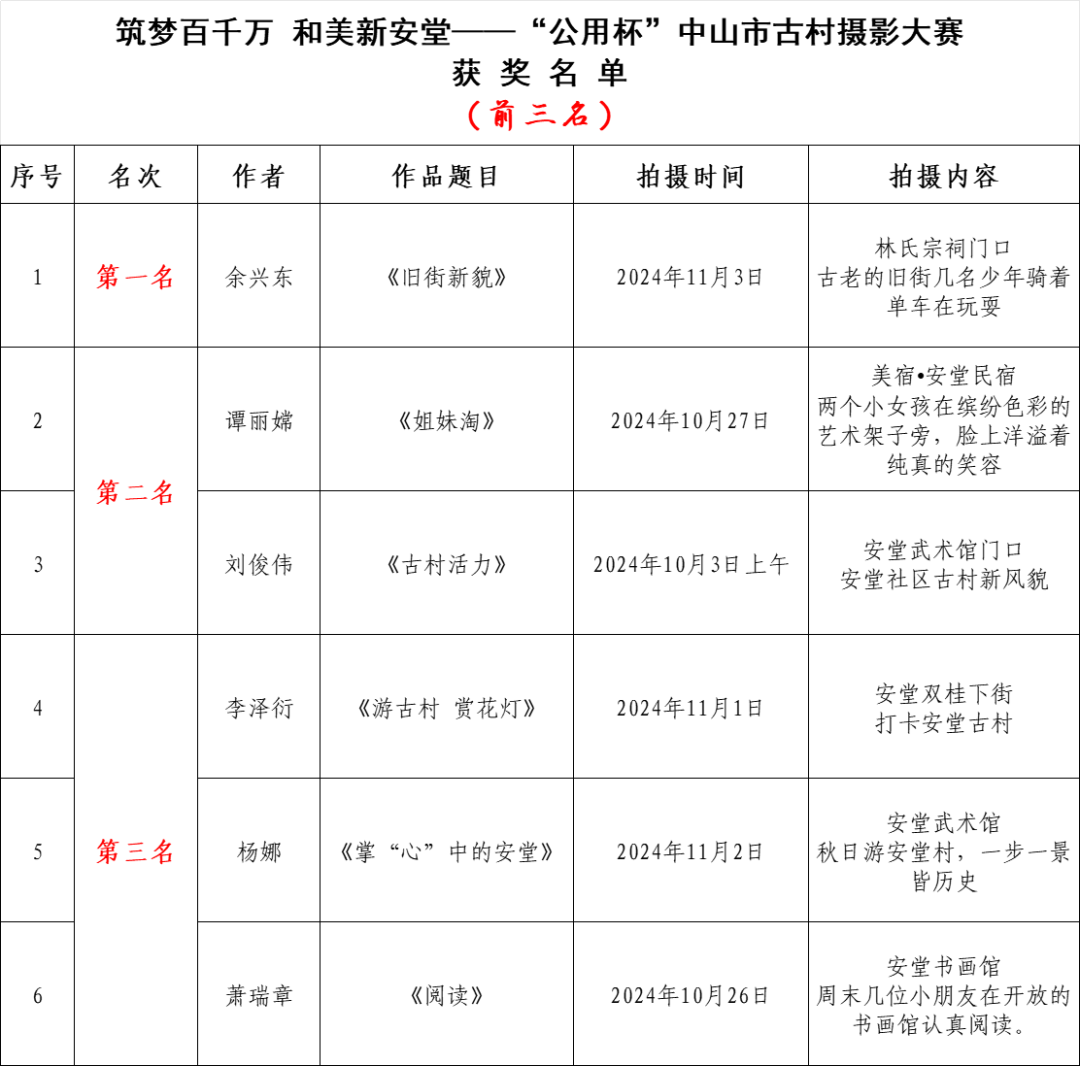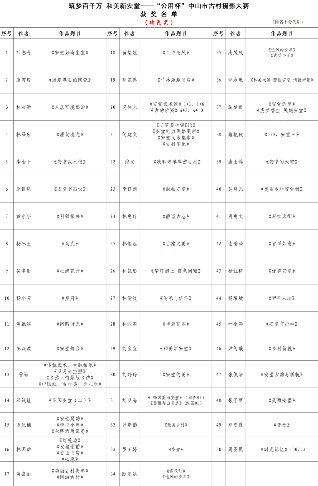 据悉,该活动由市“百千万工程”指挥办、市国资委、投控集团指导,由中山公用、安堂社区主办,为期一个半月合计收到作品超过500多幅,有效为安堂社区文旅产业实现游客导流,全方位展示安堂社区的古村新貌,通过广大摄影爱好者的镜头,用光影记录“百千万工程”的建设成果。