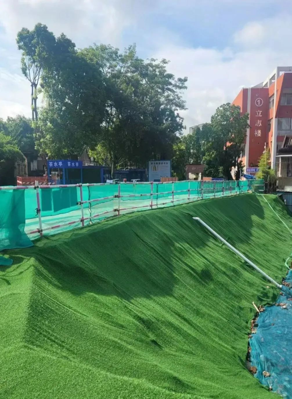 项目严格按照国家相关标准和规范,对施工现场进行全面防护。项目根据施工区域情况设置相应的安全防护,如地下室基坑区域沿线布置了醒目的安全警示灯带和防护栏、太阳能红外线自动报警器以及危险源公示牌,土方施工区域设置洗车设施并铺设绿草皮覆盖裸露土;同时,建立安全防护设施定期检查和维护制度,确保防护设施始终处于完好状态。此外,项目注重个人防护装备的配备和使用,要求施工人员必须穿戴齐全的反光衣和安全帽、高处作业人员佩戴安全带等,有效降低施工过程中的安全风险。