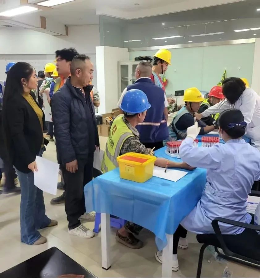 安全关爱与安全宣传是共同构筑项目顺利推进的坚实基石。为此,项目积极组织工人体检,全面细致地评估工人的健康状况,旨在提升工人的健康意识与自我保护能力,确保每位工人都能以最佳的身体和精神状态投入日常工作。同时,项目现场设立安全知识宣传栏,并坚持定期更新安全相关信息,以强化安全教育。此外,在建筑外架搭设处醒目位置挂企业标识标语与安全警示语,全方位营造一个浓郁的安全文化氛围,让安全理念深入人心。
