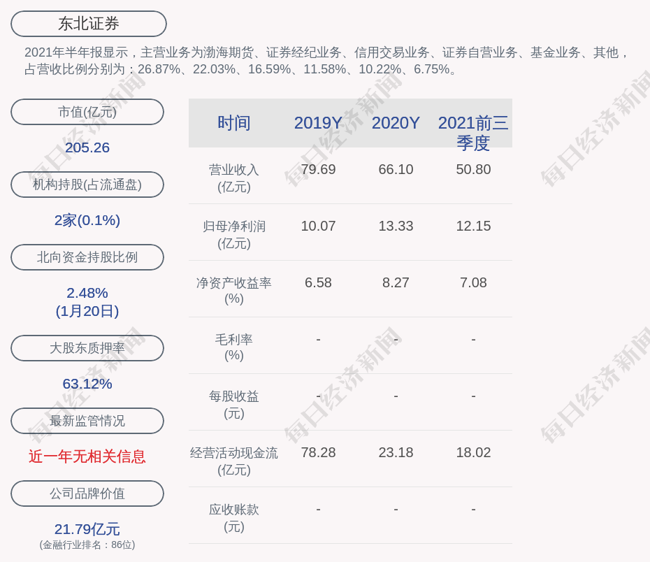 2021年半年报显示,东北证券的主营业务为渤海期货、证券经纪业务、信用交易业务、证券自营业务、基金业务、其他,占营收比例分别为:26.87%、22.03%、16.59%、11.58%、10.22%、6.75%。