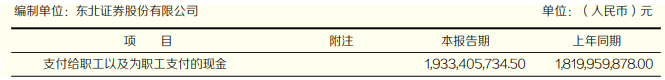 2022年,东北证券支付给职工以及为职工支付的现金为19.33亿元,上年同期为18.20亿元。
