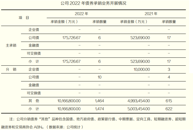 2022年,东北证券完成公司债券主承销项目6个;新增申报债券项目14个,新增立项债券项目37个。
