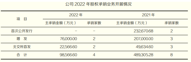 2022年,东北证券新增完成股权项目4个,其中非公开发行项目2个,北交所首发项目2个;累计完成北交所首发项目6个,行业排名第9位;新增申报股权项目9个,新增立项股权项目18个,其中北交所项目11个。