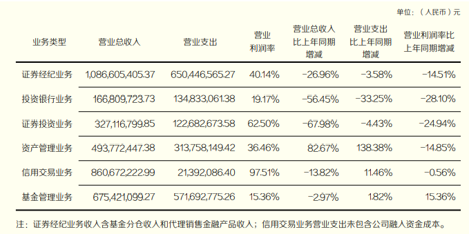 主营业务分业务来看,2022年,东北证券证券经纪业务总收入为10.87亿元,同比下降26.96%;投资银行业务总收入为1.67亿元,同比下降56.45%;证券投资业务总收入为3.27亿元,同比下降67.98%;资产管理业务总收入为4.94亿元,同比增长82.67%;信用交易业务总收入为8.61亿元,同比下降13.82%;基金管理业务总收入为6.75亿元,同比下降2.97%。