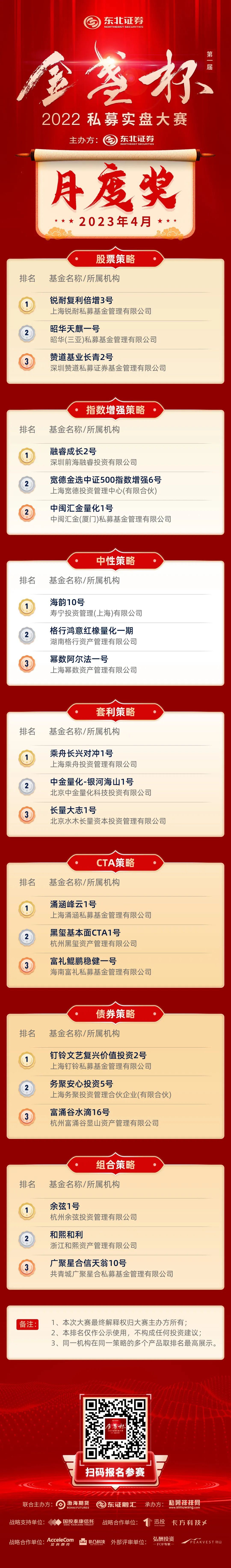 虽然市场整体赚钱效应较弱,但在4月的角逐中,仍有多家管理人抗住压力,交出亮眼的成绩单,荣获月度奖项,既有上海宽德私募、寿宁投资等为代表的大中私募,也有许多小规模的私募。下面让我们一起揭晓结果。