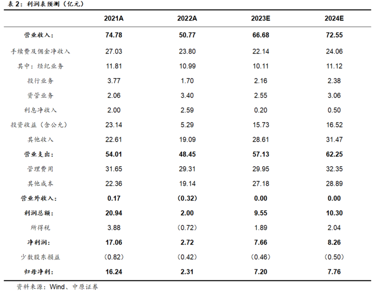 东北证券2023年中报概况: