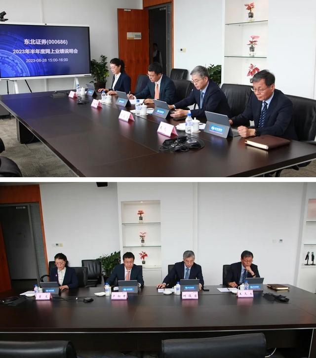 2023年8月28日,东北证券通过“全景网”以在线互动方式成功召开2023年半年度网上业绩说明会。东北证券副董事长、总裁何俊岩先生,独立董事卢相君先生,副总裁、财务总监王天文先生和董事会秘书董曼女士共同现场出席并与投资者进行实时交流。