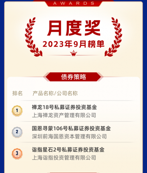 经过一个月的精彩比拼,本次活动产生了首个月度奖项名单,许多攻守兼备的绩优私募管理人在9月的赛程中脱颖而出。下面我们一起揭晓答案。