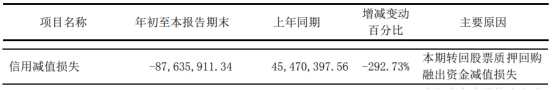 今年前三季度,东北证券信用减值损失为-8763.59万元,上年同期为4547.04万元,主要原因为本期转回股票质押回购融出资金减值损失。