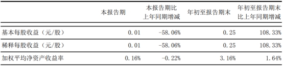 今年前三季度,东北证券基本每股收益为0.25元/股,同比增长108.33%;加权平均净资产收益率为3.16%,比上年同期增长1.64个百分点。