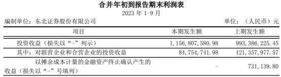今年前三季度,东北证券投资收益为11.57亿元,上年同期为9.93亿元。