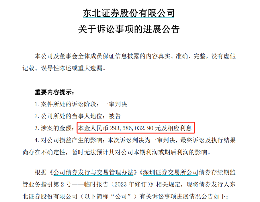 对此,东北证券表示,该诉讼事项对其业务经营、财务状况及偿债能力无重大影响;该次诉讼判决为尚未生效的一审判决,暂时无法预计其对公司本期利润或期后利润的影响。