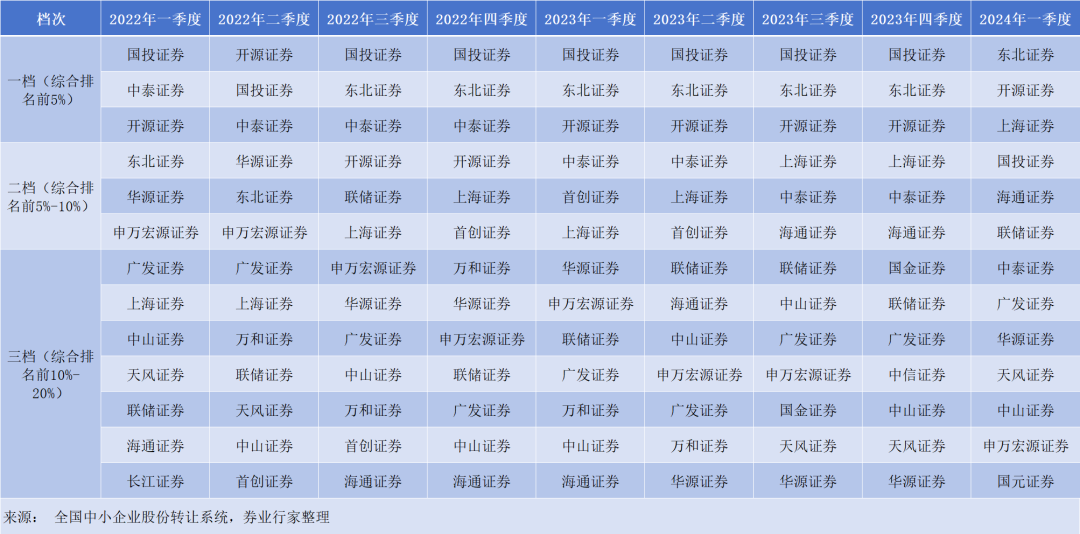 4月17日,全国中小企业股份转让系统有限责任公司(简称:全国股转公司)如期发布了股转公告〔2024〕139号公告,公布2024年一季度做市商的评价结果。