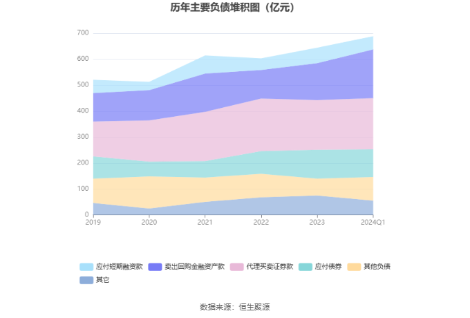 负债重大变化方面,截至2024年一季度末,公司卖出回购金融资产款较上年末增加32.06%,占公司总资产比重上升4.34个百分点;其他负债较上年末增加39.91%,占公司总资产比重上升2.56个百分点;拆入资金较上年末减少56.42%,占公司总资产比重下降1.80个百分点;应付短期融资款较上年末减少15.89%,占公司总资产比重下降1.45个百分点。
