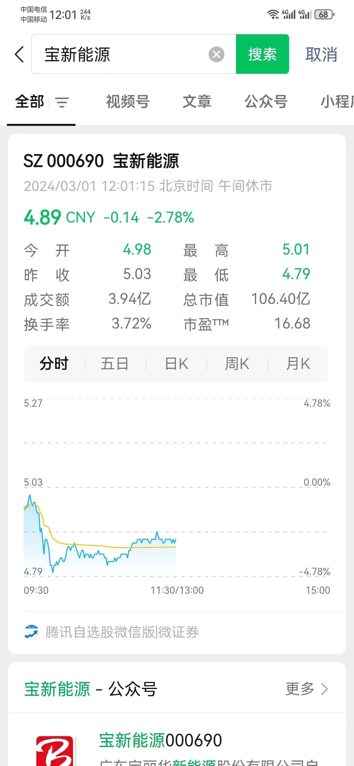 二级市场上,截至3月1日午间收盘,宝新能源报4.89元/股,跌2.78%,总市值106.4亿元。