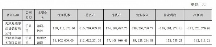 2022年度,海顺印业的营业收入为3.39亿元,但是净利润为-1.74亿元;新华印务营业收入为7522.53万元,净利润为14.23万元。