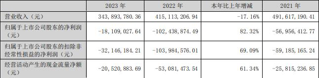 据滨海能源2023年年报,2023年,公司实现营业收入3.44亿元,同比减少17.16%;归属于上市公司股东的净利润-1810.90万元;归属于上市公司股东的扣除非经常性损益的净利润-3214.62万元;经营活动产生的现金流量净额-2052.09万元。