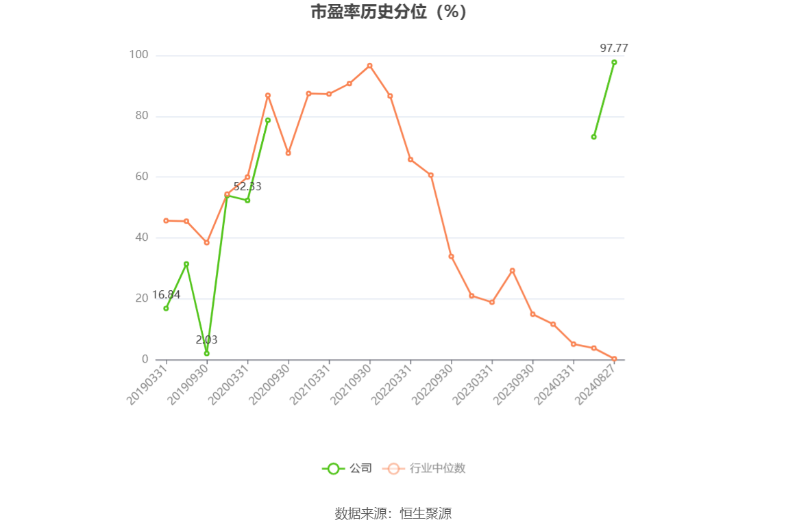 市盈率为负时,不显示当期分位数,会导致折线图中断。
