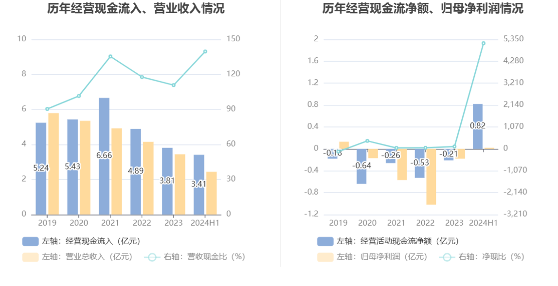 2024年上半年,公司营业收入现金比为139.66%,净现比为5162.78%。
