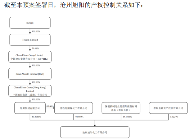 截至预案签署日,旭阳集团持有沧州旭阳80.4765%的股权,为沧州旭阳的控股股东,杨雪岗为沧州旭阳的实际控制人。